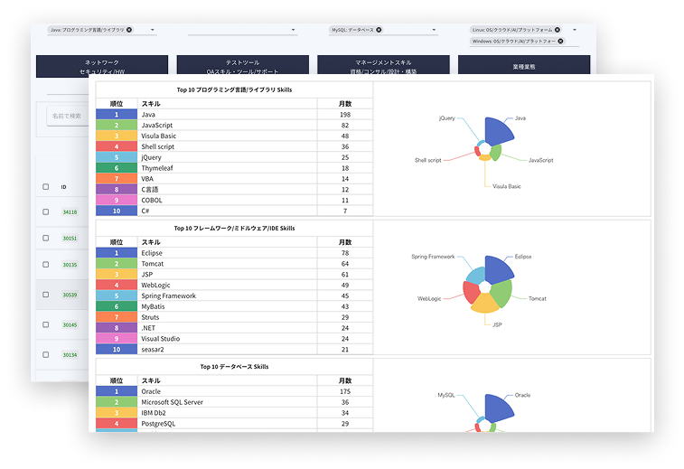 - 漏れなくエンジニアをサーチでき、提案機会が増加。またその裏付けも理解したうえで提案を進めることで、営業のエンジニアスキルセットへの理解も向上。